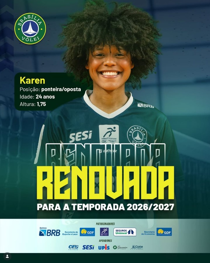 Com 24 anos e 1,75m de altura, Karen continua sendo peça importante na construção do nosso time para mais uma temporada. Seguimos juntos por mais!